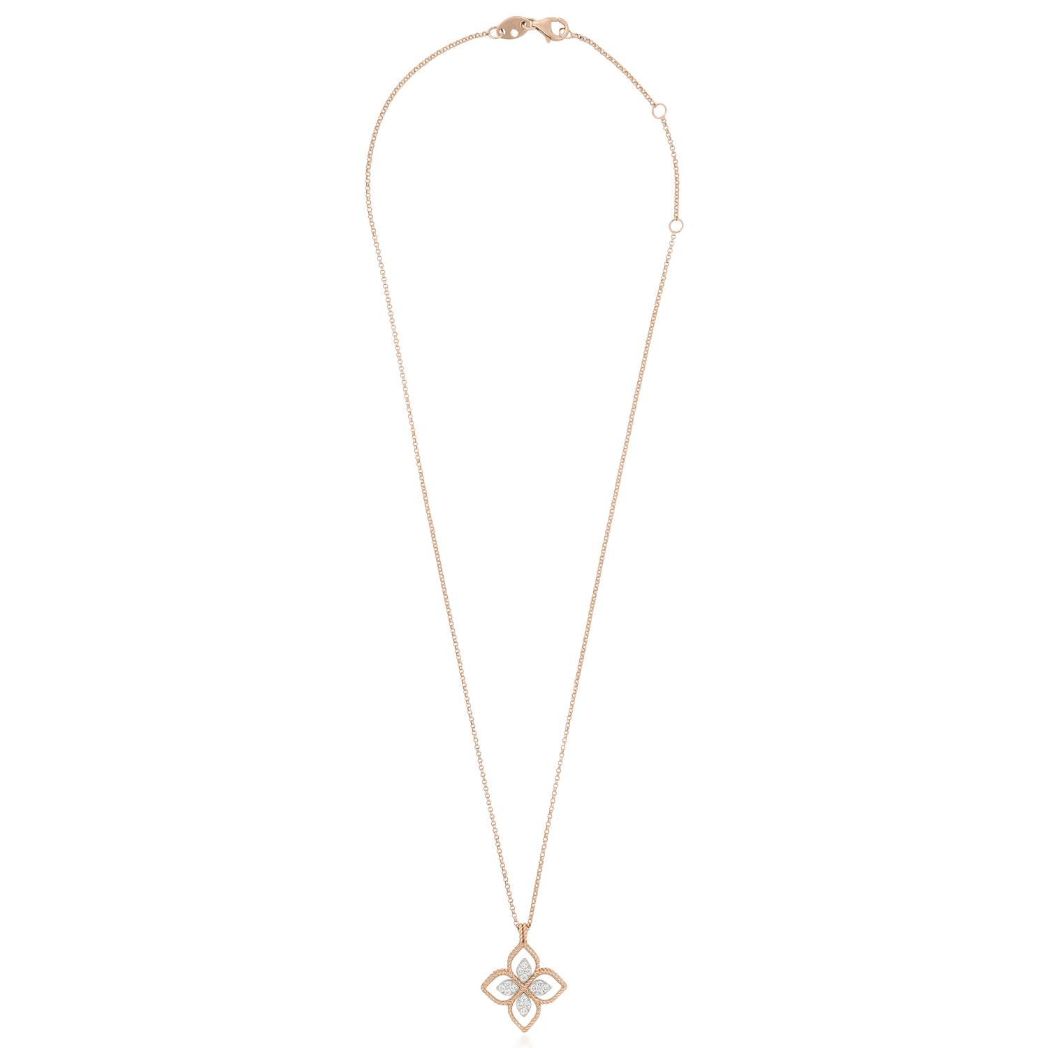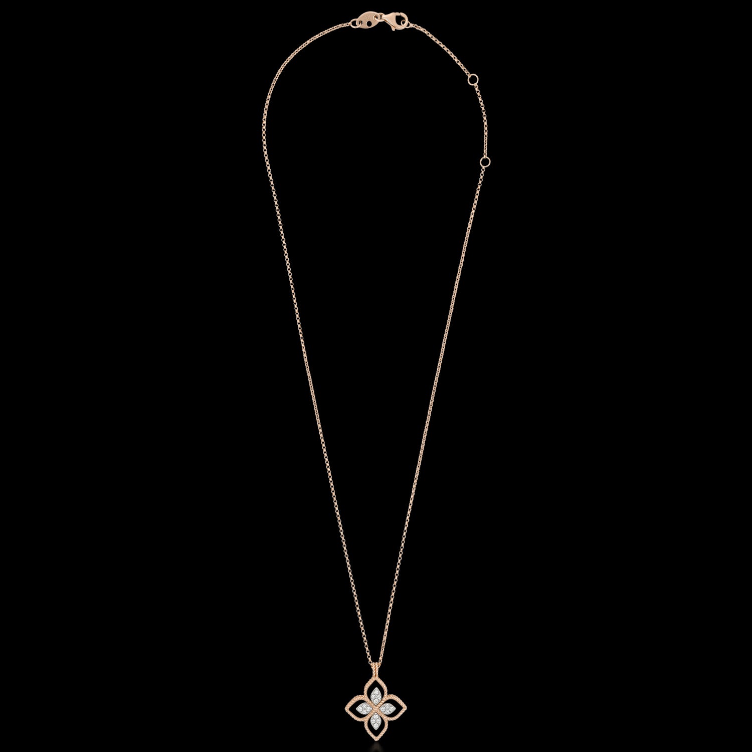 Princess Flower Pendant in 18kt rose gold with diamonds. Small version.