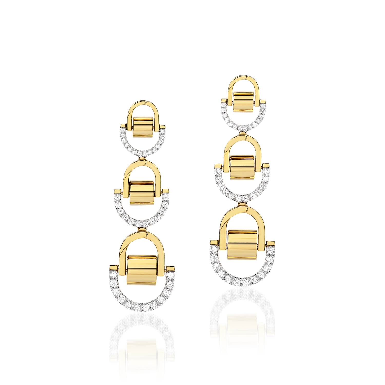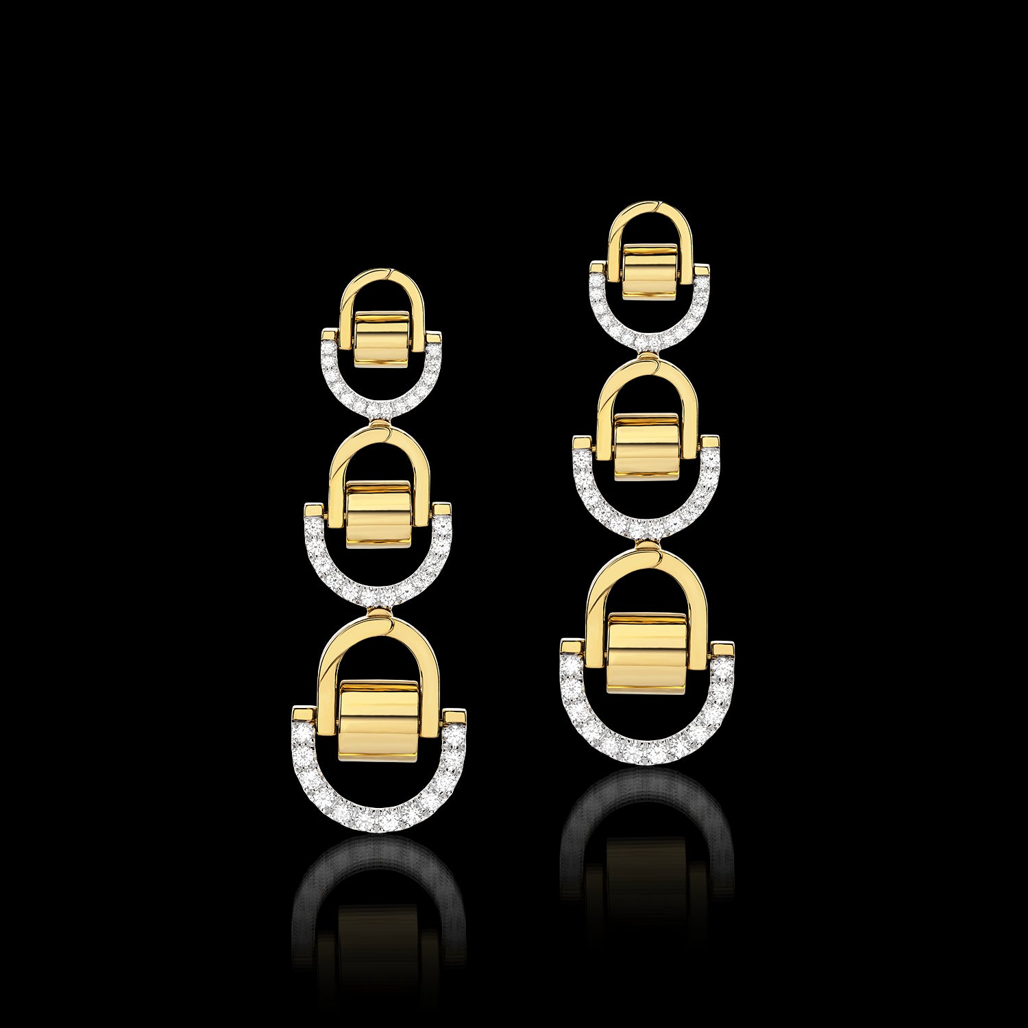 Pair of pendant earrings in 18K yellow gold with brilliant-cut diamonds.