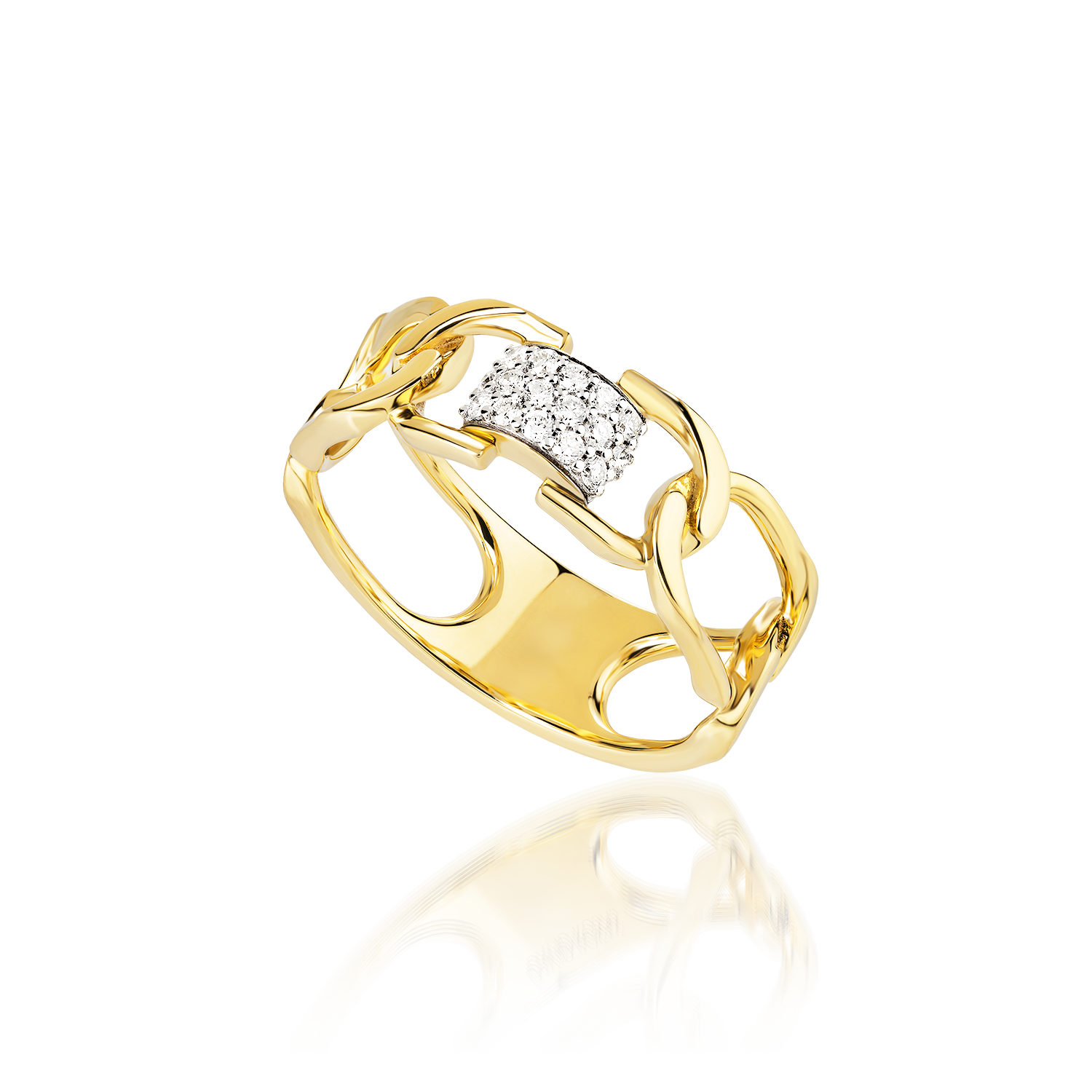 Ring in 18K yellow gold with brilliant-cut diamonds.