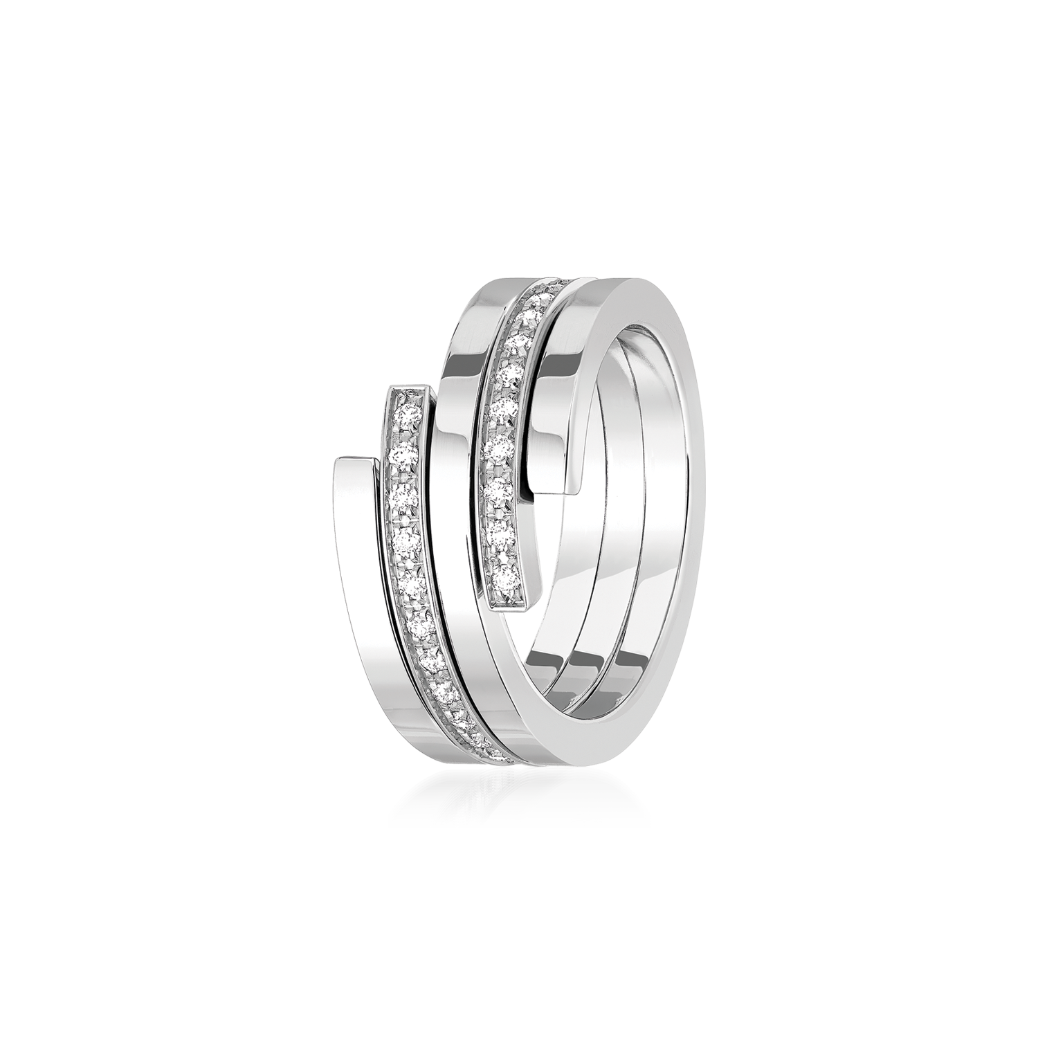 18K white gold ring. True to the boldness of its creator, the Spirale dinh van collection combines elementary and key codes of the Maison: the thread, the square shape, the variations of materials and colors. Playful creations, the Spirale dinh van collection can get endlessly tangled.