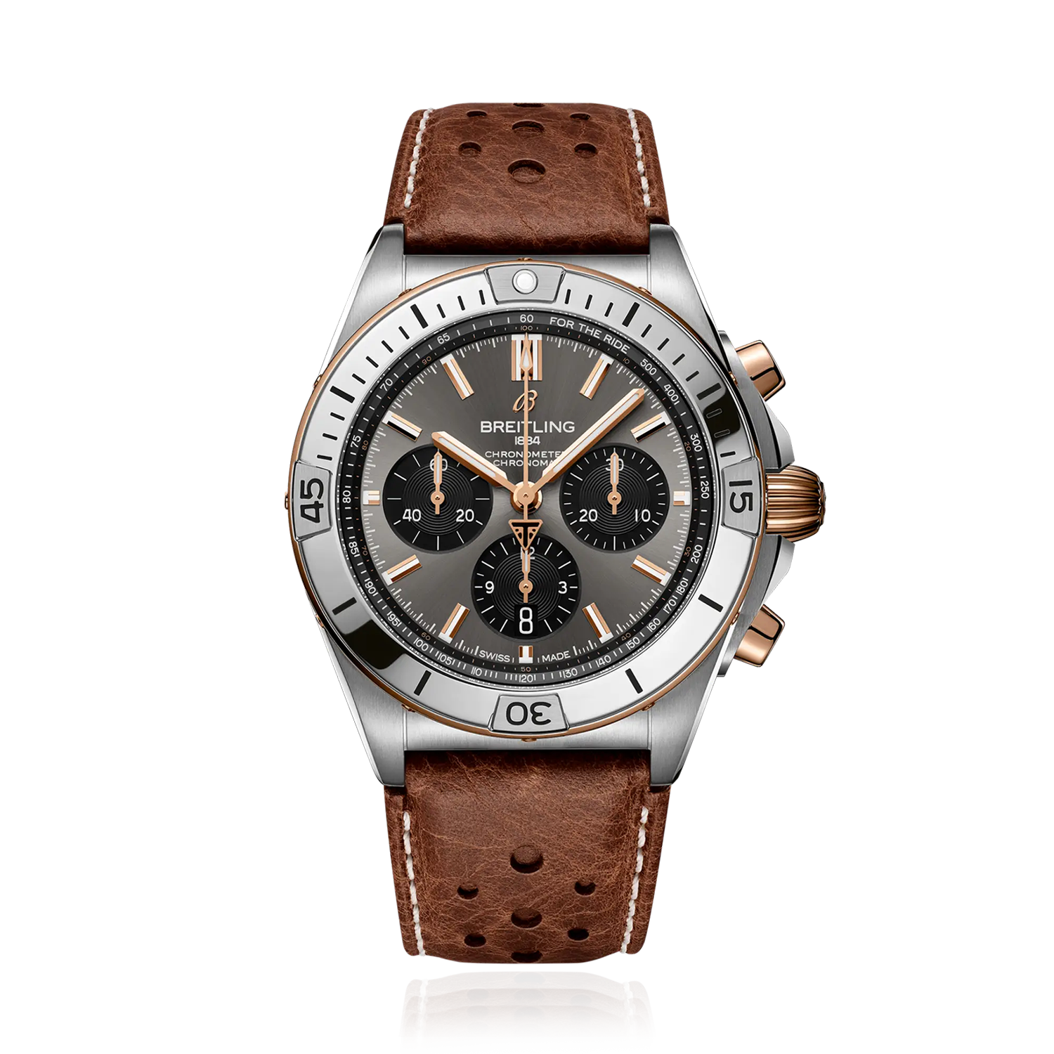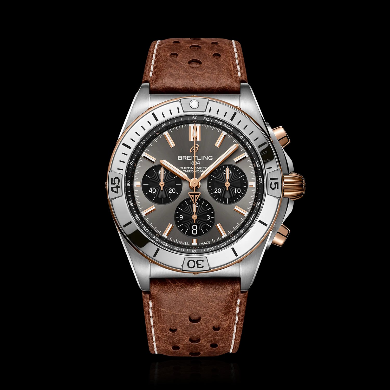 Breitling’s versatile Chronomat, in collaboration with British motorcycle brand Triumph. The Chronomat holds a significant place in Breitling’s history.