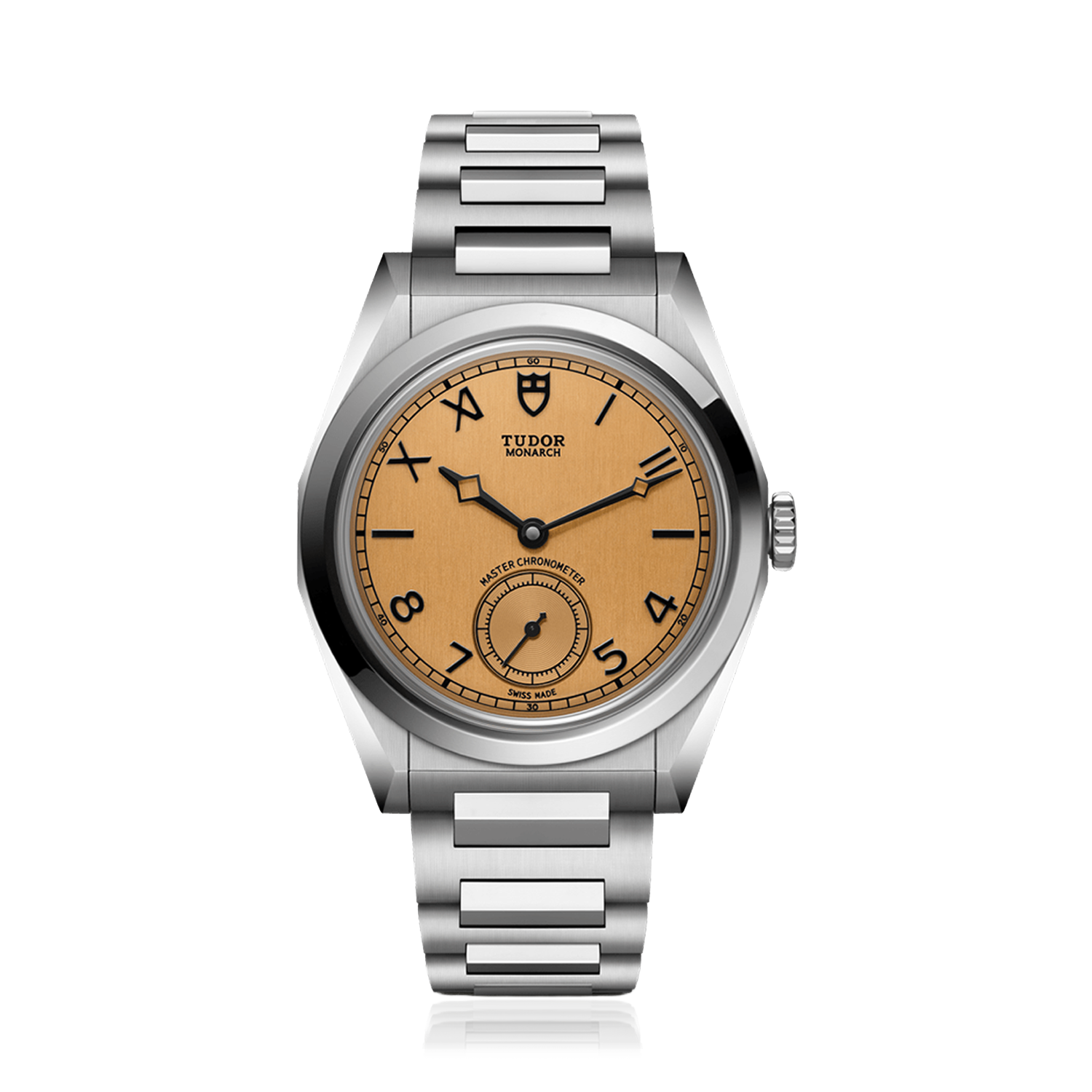 39mm stainless steel faceted case with polished and satin finishes