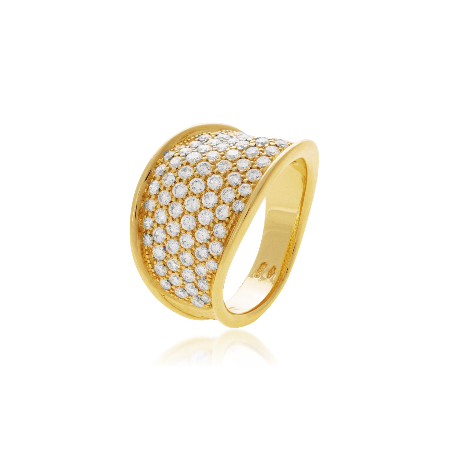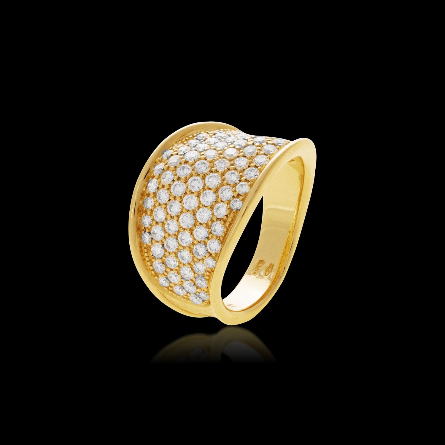 Band ring in 18kt yellow gold hand-engraved using an ancient Florentine technique, boasts unique wearability and minimalist volumes.