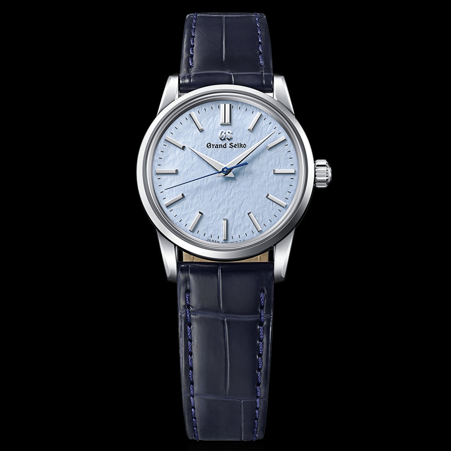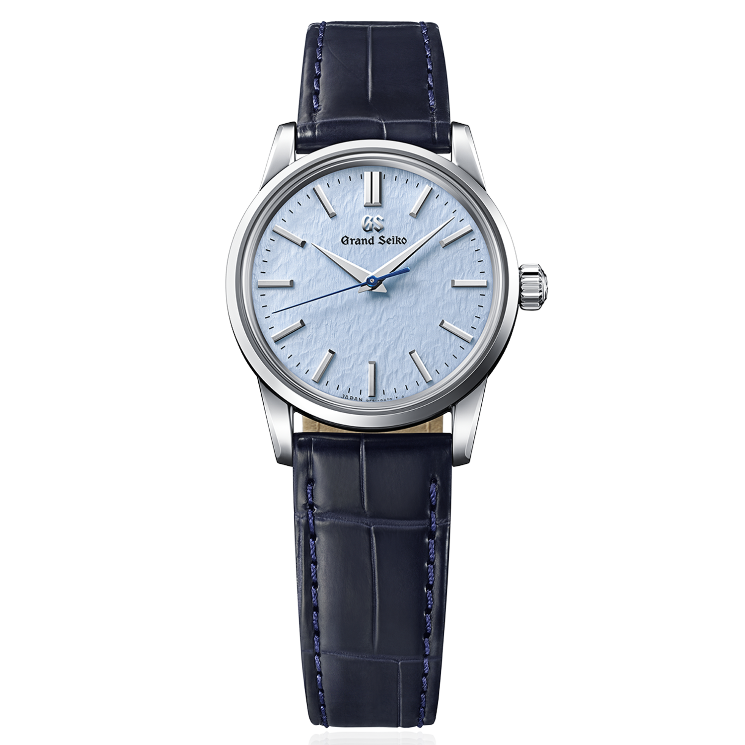Although slim, small and minimalist in design with a diameter of 34mm, this elegant Grand Seiko quartz watch represents the core values: precision, durability, ease of use and beauty, which are at the heart of Grand Seiko. Made at the Shinshu Watch Studio in the mountains of central Japan, the pale blue dial has the texture and color of the snow that for several months of the year is visible to Grand Seiko watchmakers. The dial is clean, simple, and has a calm, serene beauty that somehow seems typically Japanese. Its state-of-the-art 9F quartz caliber offers a high accuracy of 10 seconds per year. The hour markers are faceted and diamond-cut to stand out clearly from the dial, and the 12 o'clock marker has a distinct design so that from any angle, the time is easily readable at a glance.