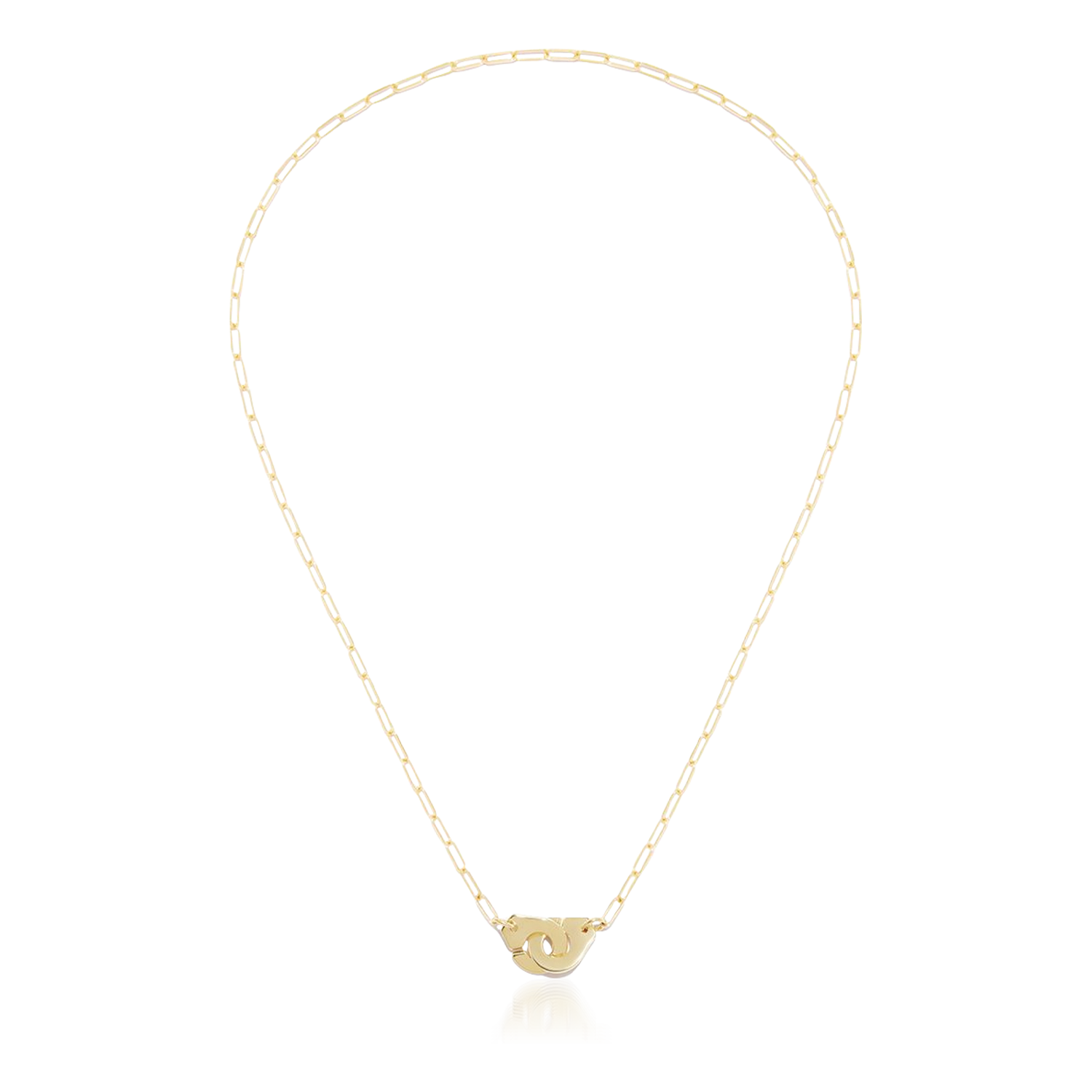 A rebellious spirit, a symbol of union or attachment, the Menottes dinh van clasp is placed at the center of the signature chain to become an iconic necklace.