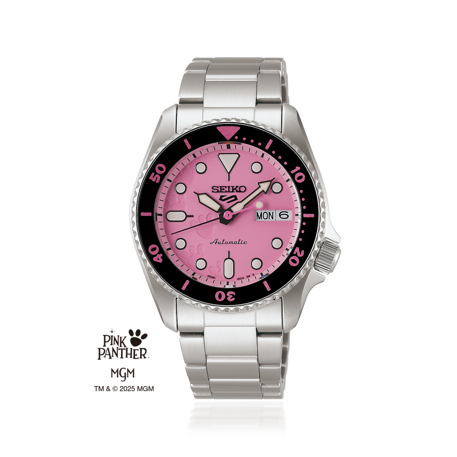 Since debuting in the opening of the 1964 film The Pink Panther, this beloved character has captured hearts around the world. Cool yet curious, mischievous, and full of charm, the Pink Panther has brought smiles to generations. A new Seiko 5 Sports model embodies the Pink Panther’s bold and playful spirit with a design that brightens everyday life and brings a sense of excitement and fun to those who wear it.