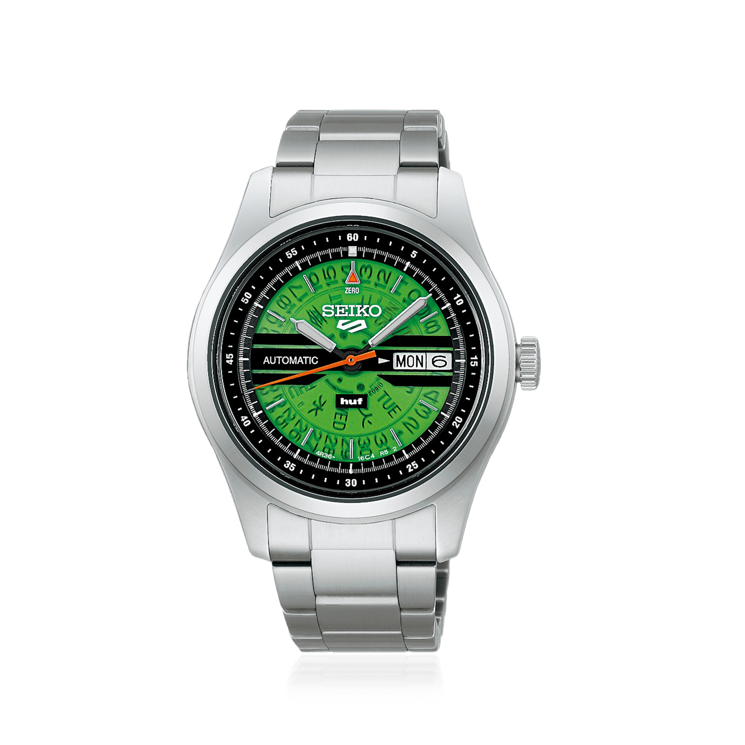 Based on the Seiko 5 Sports Field series with a “HUF Green” color.
