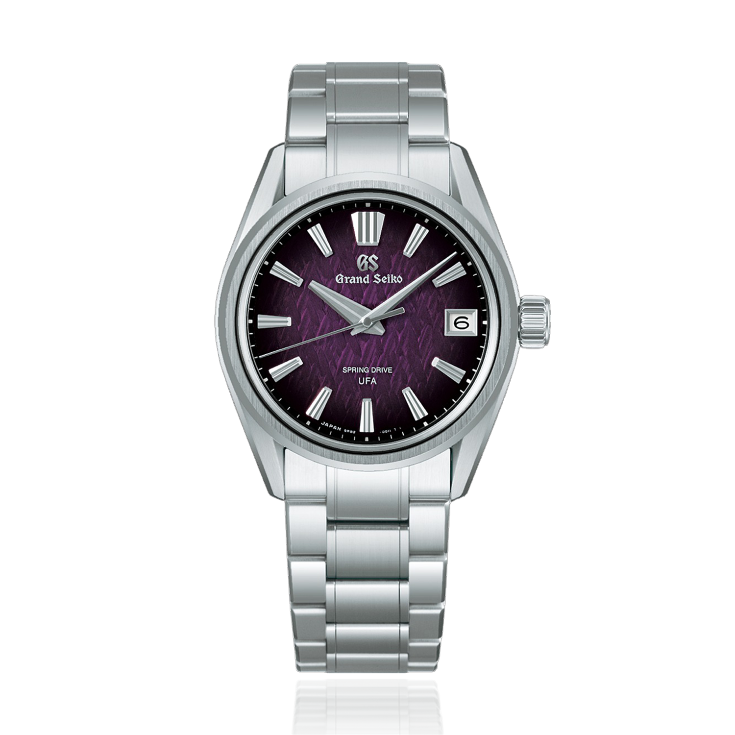 This new Spring Drive U.F.A. creation is based on the “Evolution 9 Style,” a unique design grammar that takes the fusion of Grand Seiko’s spirit with the aesthetic sensibilities of Japan to a higher level. Its textured, violet-colored dial expresses the breathtaking moment when dawn breaks over the frost-covered forests of the Shinshu region of central Japan, where all Grand Seiko Spring Drive watches are meticulously crafted.