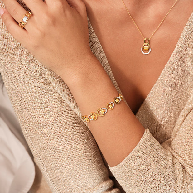 The gold links, illuminated by the sublime sparkle of diamonds, symbolise transformative and lasting encounters. Each jewel carries within it stories of love, family and emotional legacies that eternalise the essence of connections.