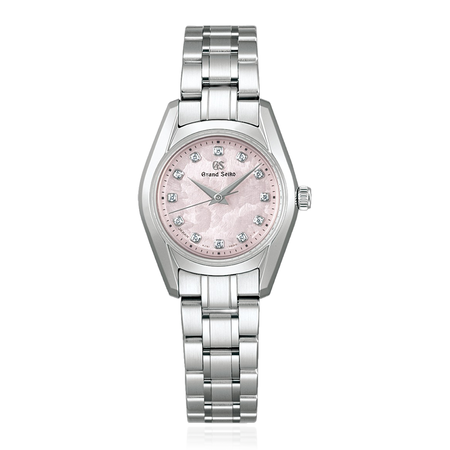 A new 26mm quartz model enhances the 62GS lineup with the option of a discreetly elegant size. The original 62GS launched in 1967 and debuted Grand Seiko’s first automatic movement, becoming one of Grand Seiko’s most memorable timepieces. Reinterpreting this timeless design, this model uses a dial that expresses the unique seasonal changes of Japan. It evokes Hana-Ikada, the beautiful “flower raft” scene in which cherry blossom petals are swept from their branches by spring breezes before settling on river surfaces. As with the original 62GS, a bezel-free construction grants the dial an expansive appearance, with the Zaratsu polishing technique creating a striking, multifaceted case design. Despite the case’s small size, its design ensures perfect legibility. The symmetrically arranged diamonds contribute to the watch’s brilliance, and the movement inside is the quartz Caliber 4J51, which achieves an accuracy of ±10 seconds per year.
