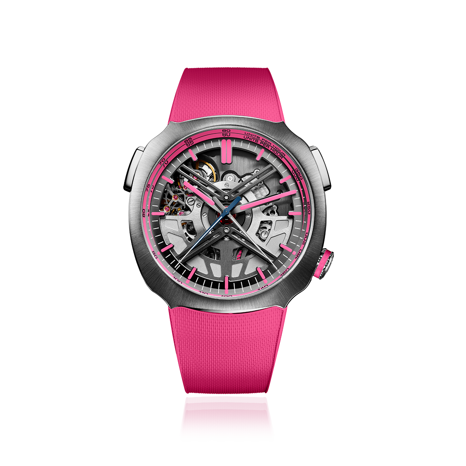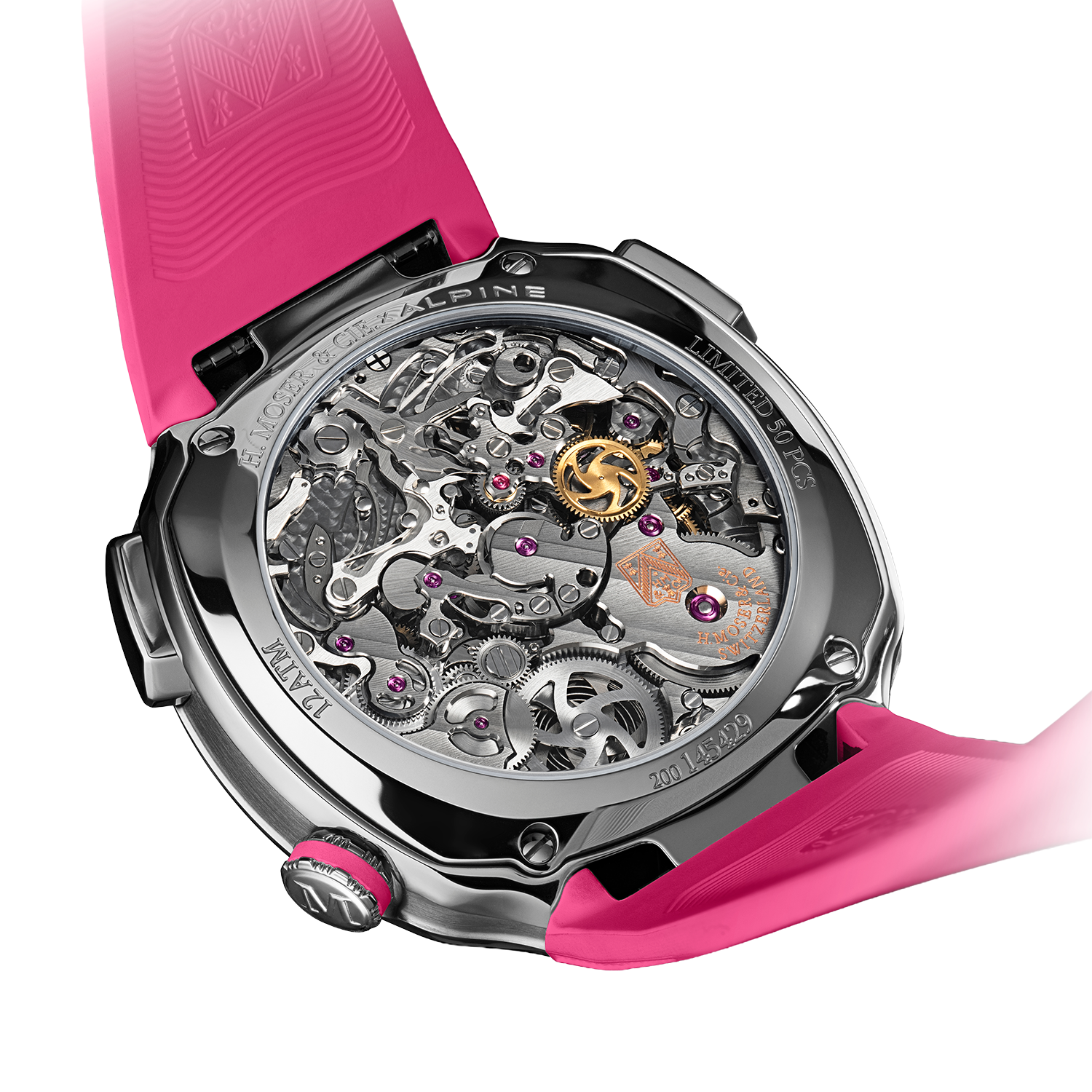 The Streamliner Alpine Drivers Pink Edition bursts onto the track, inspired by the eye-catching second livery of the BWT Alpine Formula One Team. Born from close collaboration with the Alpine drivers, this is a watch you know, in a new hue. You’ve got all those lovely little details: twin V-shaped bridges inspired by single-seater suspension. A central caseback bridge shaped like a racing helmet. An openworked rotor echoing the Alpine A110 wheel rim. Powering it all is the HMC 700, our first fully skeletonised chronograph, complete with a flyback function for instant, precise timing. Pure adrenaline. Now in pink.