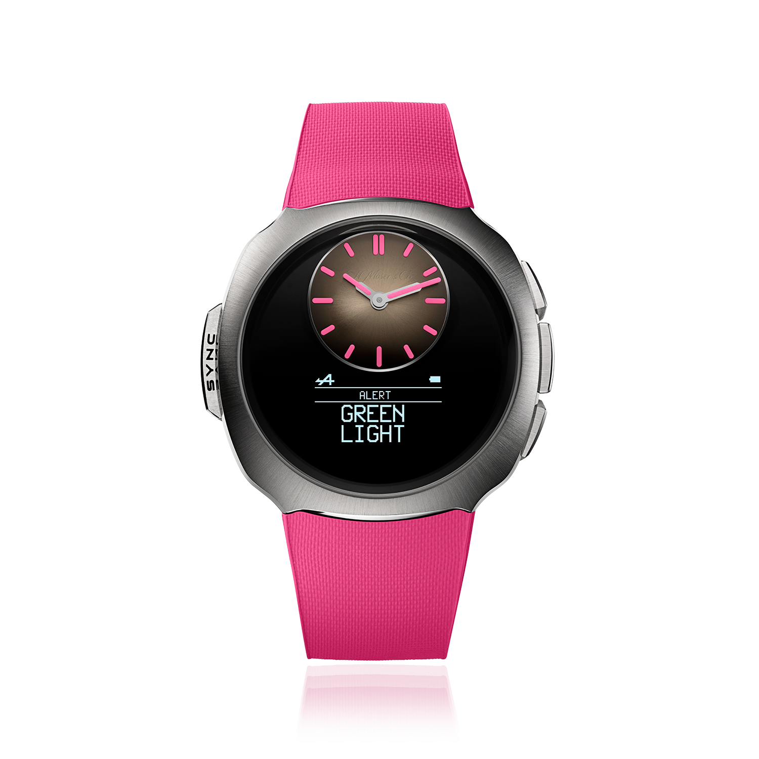 Our loyal digital marvel, now also in pink. Inspired by the team behind every racing dream, the Streamliner Alpine Mechanics Pink Edition gets a new lick of colour. Made for the fast-paced F1 environment, it helps streamline communication, speed up processes and save those precious fractions of a second that make all the difference. Its screen remains silent on standby, bursting into life with information when activated: GMT with country selector, split-seconds chronograph, perpetual calendar and F1 race mode. The timepiece has a classic side too, with the time displayed on a small domed grey dial, a homage to the second livery of the BWT Alpine Formula One Team. Of course, the timepiece comes together with the Streamliner Alpine Drivers Pink Edition, never alone. Just like any great team.