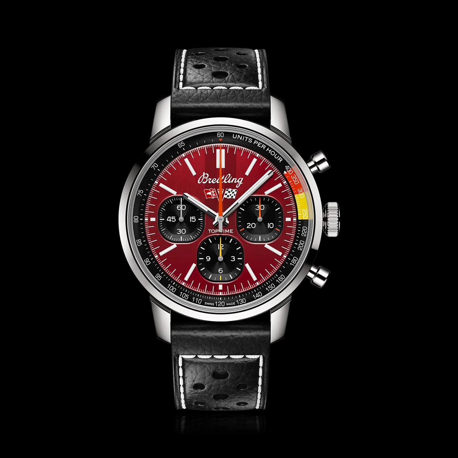 The 1960s was a decade of experimentation, fun, freedom and energy. Whether cruising on a motorcycle or revving up a sportscar, living life at full speed was the order of the day. Willy Breitling felt this change of pace and set out to design an unconventional chronograph that would capture the verve of era. He called it the Top Time. That spirited tradition continues today with Breitling partnering with some of the coolest names in wheels to create its Top Time designs. The second-generation Chevrolet Corvette, from the 1963 to 1967 model years, is the most sought-after version of the American legend. The “Sting Ray,” as it was known, took inspiration from a 1959 racing-model prototype. For 60 years, it has captured the imaginations of car lovers around the world with its perfect combination of a low-profile body and a powerful engine that delivers performance whether on the road or on the track. The Top Time B01 Chevrolet Corvette features the colors and emblem of its classic-car counterpart as well as a perforated leather racing strap, speed-measuring tachymeter scale and contrasting “squircle” (not quite square, not quite round) subdials that give the feel of vintage dashboard gauges. It also comes with a brag-worthy engine under the hood: the exceptional Breitling Manufacture Caliber 01.